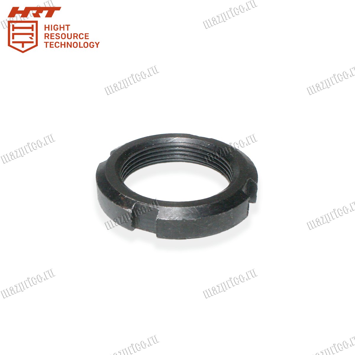 Гайка полуоси 52-2308097-HRT может иметь корончатое исполнение или прорези под шплинт, что исключает самопроизвольное отворачивание. Антикоррозийное покрытие защищает резьбу от воздействия влаги, а также агрессивной среды, продлевая срок службы узла.