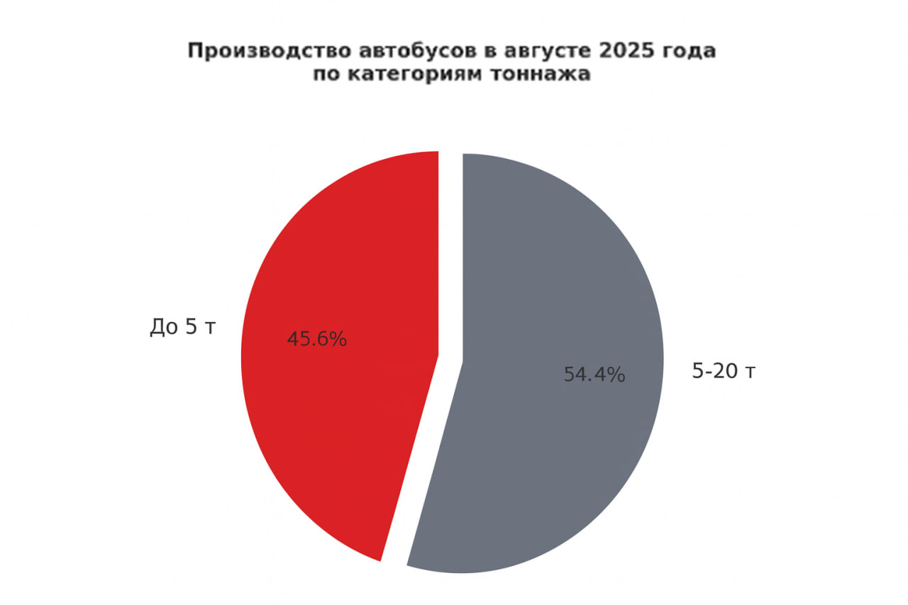 Производство крупнотоннажных автобусов в августе 2025 года официально не велось. Отсутствие показателей в этой категории говорит о том, что основной спрос сосредоточен на сегментах до 20 тонн.